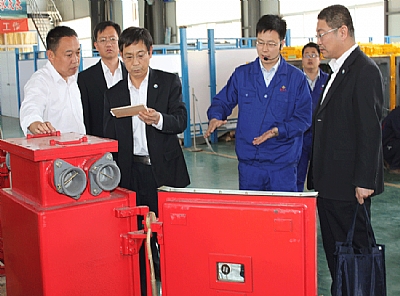 棗礦集團(tuán)董事長、黨委書記劉成錄(左三),總經(jīng)理、黨委副書記滿慎剛(左四),副總經(jīng)理殷濤(左一),新遠(yuǎn)大公司董事長(左二),黨委書記王培剛(后右)到公司親切指導(dǎo)。公司經(jīng)理羅賢峰(右二)陪同指導(dǎo)。