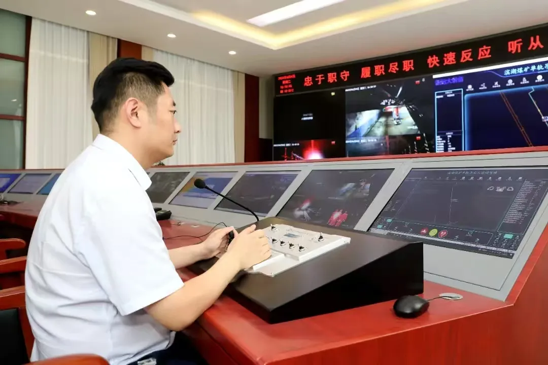 在濱湖煤礦的調(diào)度指揮中心,工作人員輕點(diǎn)鼠標(biāo),設(shè)置好起點(diǎn)與終點(diǎn),百米井下,滿載物料的單軌吊機(jī)車如同智能使者,沿著預(yù)設(shè)路線自動(dòng)行駛,沿途語(yǔ)音播報(bào)、司控道岔、風(fēng)門自動(dòng)開(kāi)關(guān),一切盡在掌握之中!包c(diǎn)對(duì)點(diǎn)無(wú)人駕駛”讓復(fù)雜的煤礦運(yùn)輸變得簡(jiǎn)單而高效。